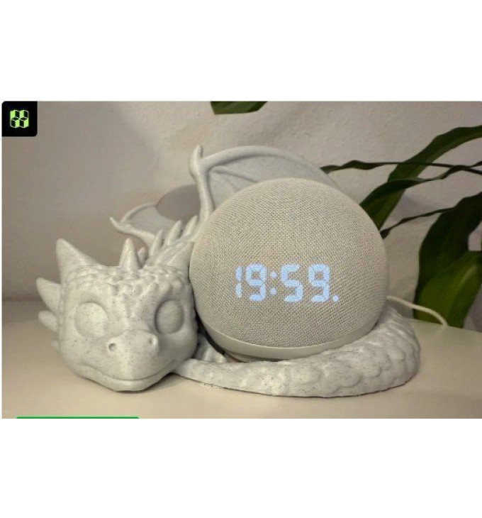 Aleksos Drakono Sargas“ – 3D spausdintas drakoniukas–stovelis, sukurtas Amazon Alexa įrenginiui. Drakonas susirangęs tarsi saugotų brangų „kiaušinį“ – į jo apskritą vietą patogiai įsitaiso Alexa kolonėlė, o pats stovas atrodo kaip stilinga dekoro detalė. Puikiai tinka ant darbo stalo, lentynos ar šalia lovos – tvarkinga, gražu ir išskirtina.