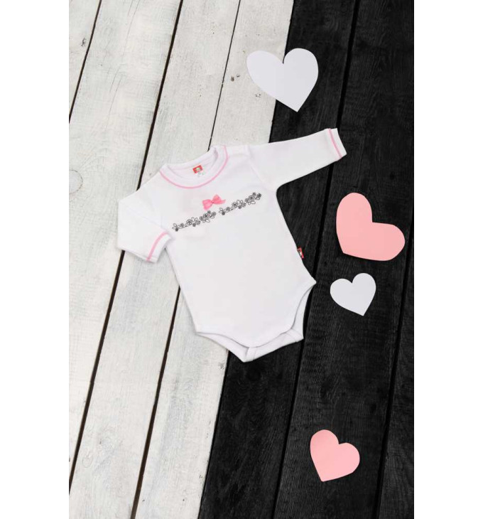 Baltas smėlinukas ilgomis rankovės, dekoruotas kaspinėliu "Širdelė"
