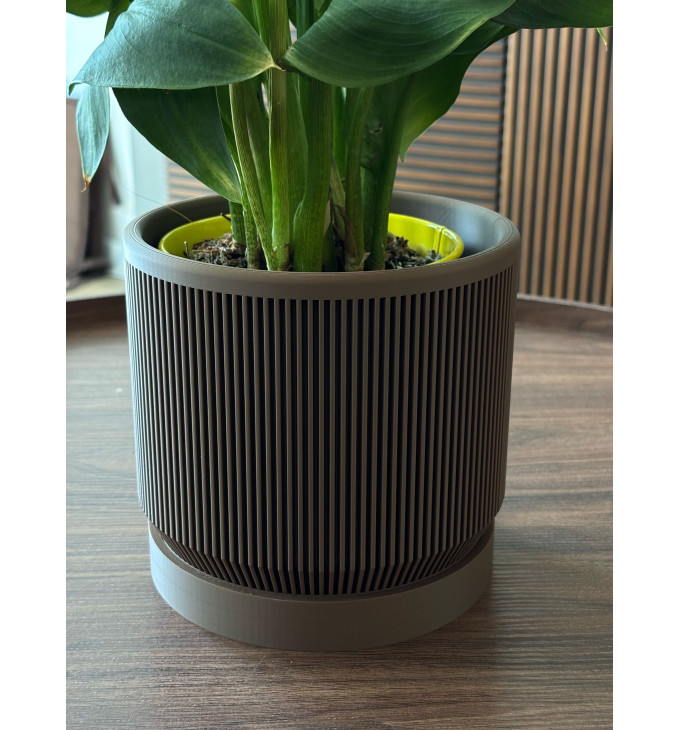 Šis modernus cilindrinis vazonas su vertikaliomis briaunomis – tvarkingas ir universalus pasirinkimas namų augalams. Briaunuota tekstūra suteikia „premium“ įspūdį ir gražiai pagauna šviesą, o neutralus siluetas lengvai dera tiek minimalistiniame, tiek skandinaviškame ar moderniame interjere.
