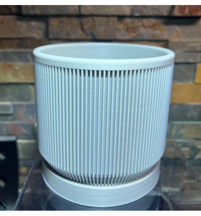 Šis modernus cilindrinis vazonas su vertikaliomis briaunomis – tvarkingas ir universalus pasirinkimas namų augalams. Briaunuota tekstūra suteikia „premium“ įspūdį ir gražiai pagauna šviesą, o neutralus siluetas lengvai dera tiek minimalistiniame, tiek skandinaviškame ar moderniame interjere.