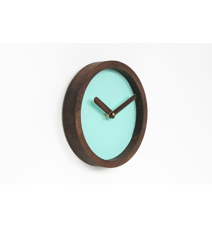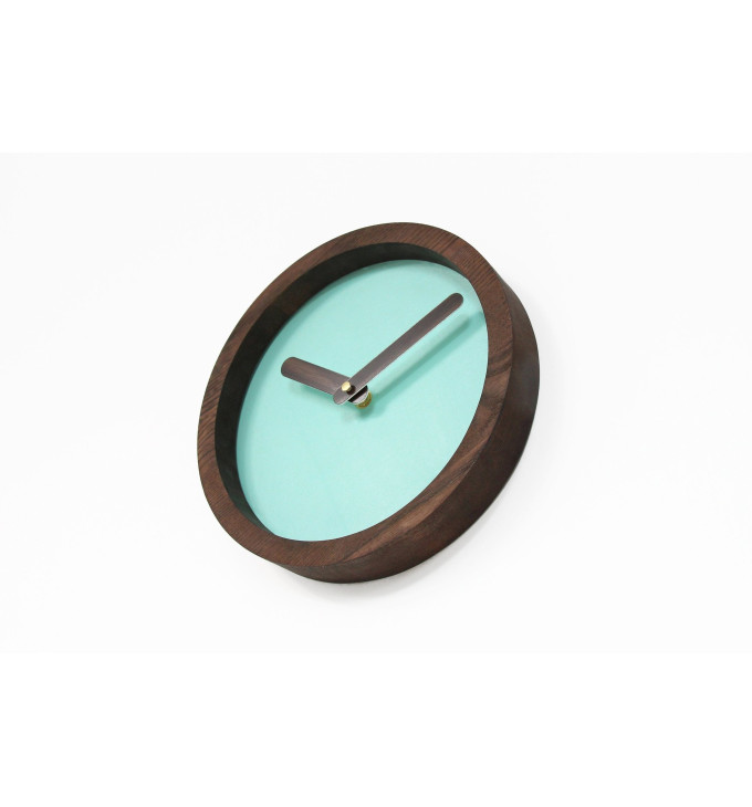 Mėtinės spalvos apvalus sieninis laikrodis su dirbtine oda