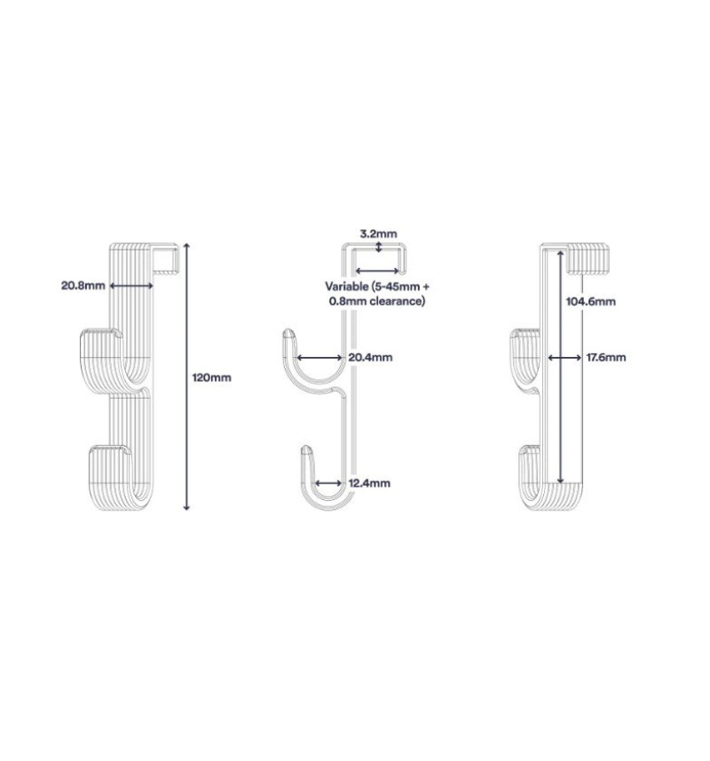 „Durų Dvigubas Kabliukas“ – praktiškas 3D spausdintas laikiklis, kuris užsikabina ant durų ir suteikia dvi pakabinimo vietas rankšluosčiui, rūbui, rankinei ar kitiems daiktams. Puikus sprendimas voniai, miegamajam, prieškambariui ar nuomojamam būstui – nereikia gręžti, tiesiog užkabini ir naudoji.