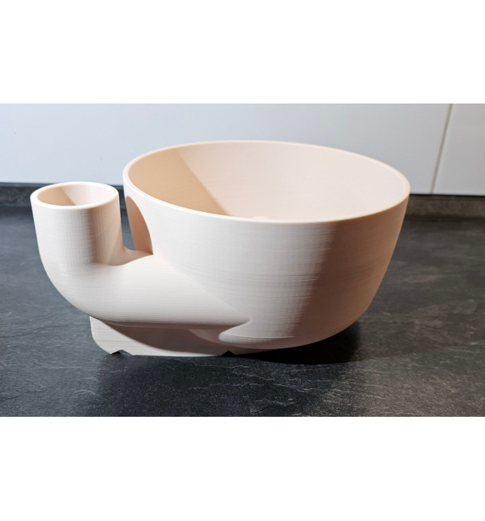 Šiame gaminyje paviršiuje gali aiškiau matytis 3D spausdinimo sluoksniai (sluoksnių linijos). Tai normalu, ypač didesniuose, funkciniuose gaminiuose, ir neturi įtakos dubens naudojimui.