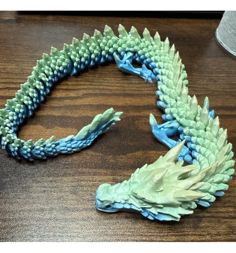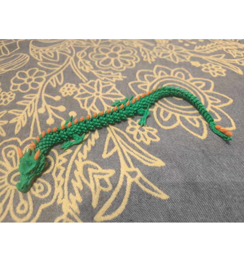 Įspūdingas, segmentuotas kinų mitologijos drakonas, sukurtas pagal FLEXY (lankstaus modelio) principus – galima judinti, lankstyti ir gražiai „banguoja“ ant stalo ar lentynos. Modelyje atkartoti mitologiniai bruožai: elnio ragai, karpio kūnas, tigro letenos, pelekai, ugninė uodega, barzda ir ilgi banguojantys ūsai.