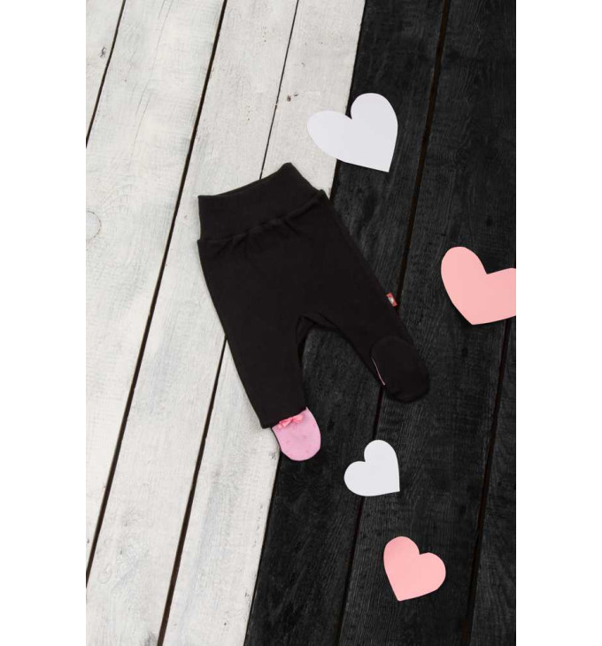 Juodos kelnės su rausvomis pėdutėmis
