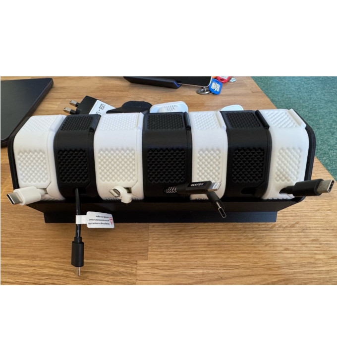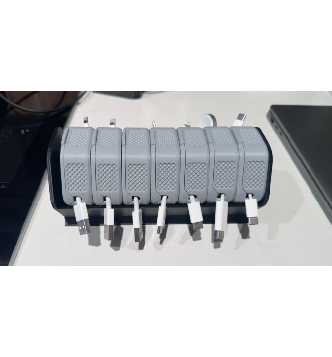 Ši 3D spausdinta dėžutė padeda palaikyti tvarką kabelių aksesuaruose ir sutaupo laiko – visi laidų vyniotuvai vienoje vietoje, be paieškų ir painiavos.