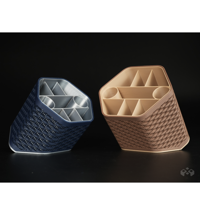 Kumiko įkvėptas raštas suteikia gaminiui išskirtinumo ir dekoratyvumo, todėl jis gali tapti ne tik praktišku pagalbininku, bet ir subtilia interjero detale. Toks organizeris puikiai tinka darbo stalui namuose, biure, mokymosi vietoje ar kūrybinėse dirbtuvėse. Tai patogus pasirinkimas norint palaikyti tvarką ir kartu suteikti darbo aplinkai daugiau jaukumo bei estetikos.