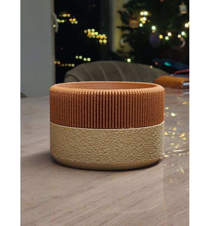 Klientas išsirenka spalvą (pagal nurodytą pasirinkimų sąrašą: 1–2 vienspalvės arba 1 daugiaspalvė), o mes pagaminame pagal pasirinkimą. Dėl savo kompaktiško dydžio vazonas ypač tinka dovanai, mažoms žaliosioms kompozicijoms arba kelių vienodų vazonų deriniui vienoje erdvėje.