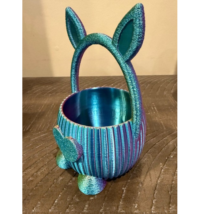 Mažas, žaismingas zuikučio krepšelis – puikus Velykų akcentas stalui, vaikų staigmenoms ar saldumynams. Krepšelis turi patogią rankeną, stabilias „kojeles“ ir mielą širdelės detalę priekyje, todėl gražiai atrodo tiek kaip dovanos įpakavimas, tiek kaip dekoracija namuose.