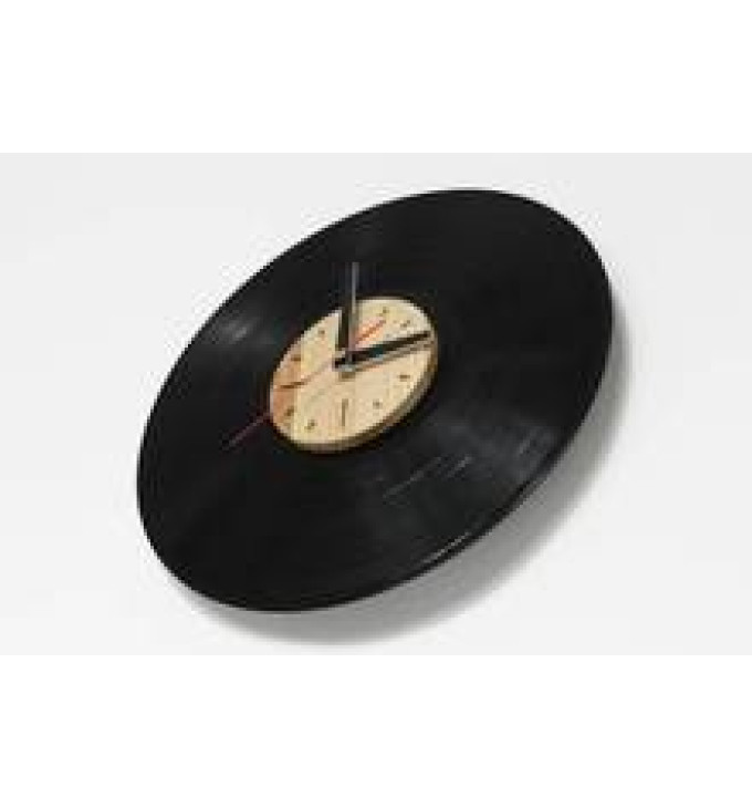 Medžio ir vinilinių plokštelių laikrodis "Retro"