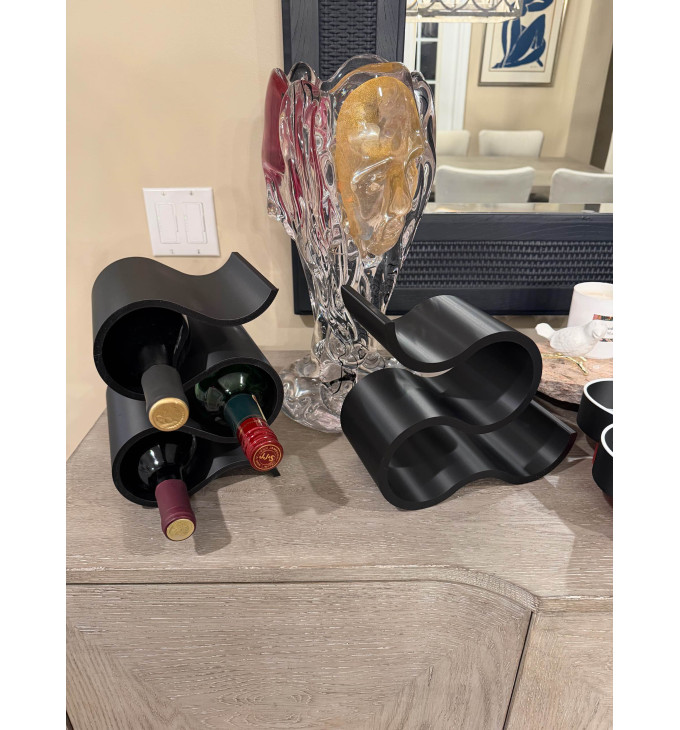 Šis modernus ir minimalistinis vyno butelių laikiklis skirtas tvarkingai bei stilingai laikyti butelius horizontaliai. Bangos formos siluetas atrodo kaip interjero detalė, todėl laikiklis puikiai tinka ne tik vyno kampeliui, bet ir virtuvės ar svetainės lentynai, baro spintai ar stalviršiui.