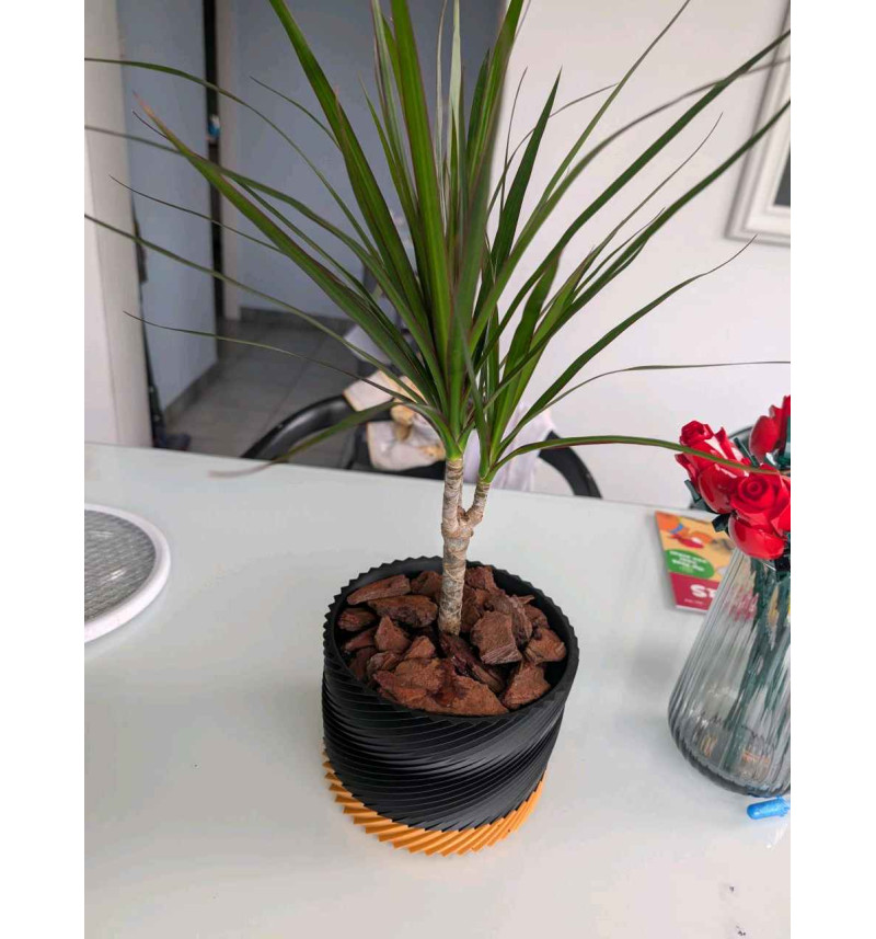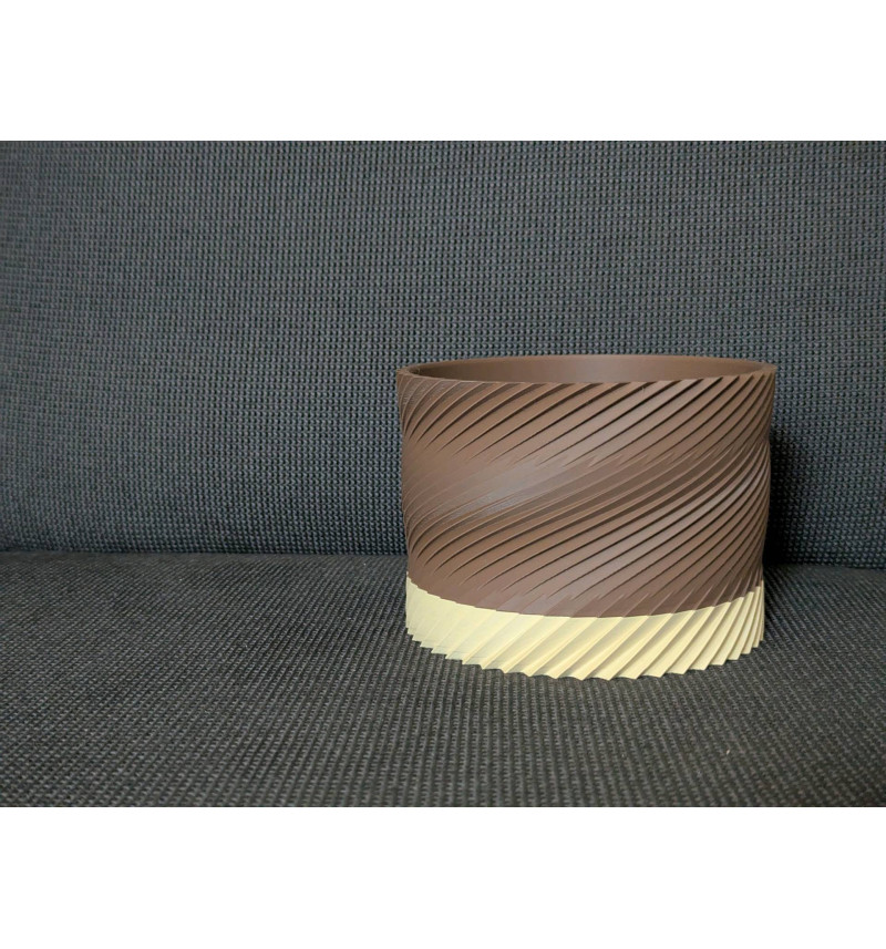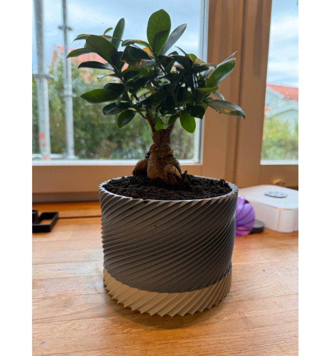 Šis modernus spiralės rašto vazonas sukurtas taip, kad atrodytų išskirtinai tiek ant palangės, tiek svetainėje ar terasoje. Konstrukcija pritaikyta patogiam augalo auginimui: vandens perteklius pasišalina per drenažą, o apačioje esanti dalis surenka nubėgusį vandenį, todėl paviršiai išlieka švarūs. Dviejų dalių dizainas leidžia lengvai išimti ir išvalyti apatinę dalį.
