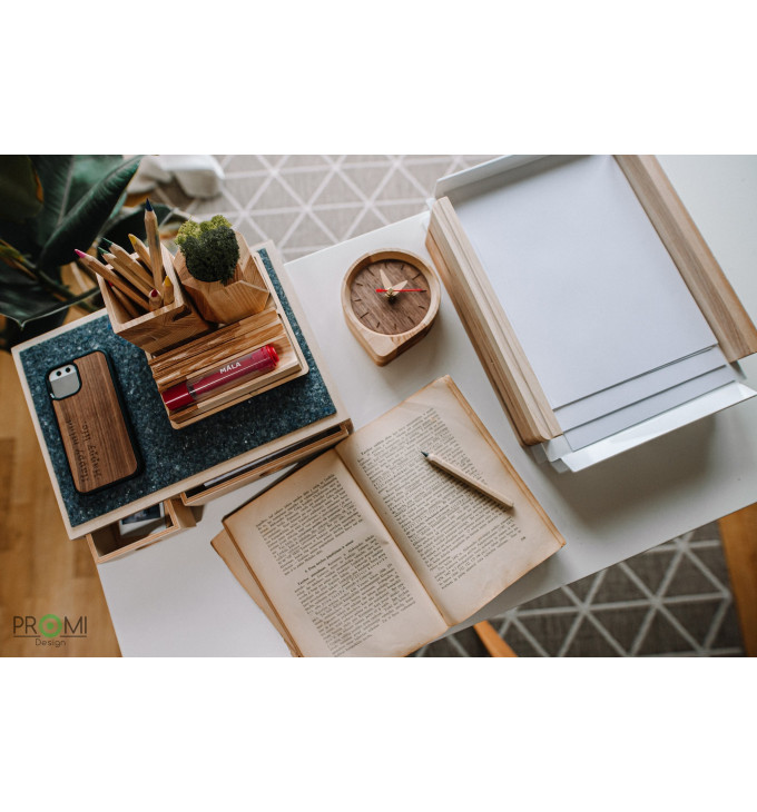 Natūralaus medžio spalvos stalo laikrodis – išskirtinė sieninis laikrodis kūdikiams, tinkanti dovanai ir kasdieniam naudojimui. Gamintojas: PROMI.Šis rankų darbo medinis mini laikrodis yra visiškai išskirtinis ir unikalus. Jums patiks šio mini laikrodžio aukšta kokybė ir unikalus dizainas. Jis veikia tyliai ir neturi jokio tiksėjimo garso, todėl puikiai tiks tiems, kurie mėgsta ramybę. Šis stilingas ir praktiškas laikrodis bus gražus jūsų namų ar biuro stalo priedas. Atkreipkite dėmesį, kad AA baterija neįeina į komplektą. Maloniai kviečiame pasižiūrėti visus mūsų gamybos laikrodžius mūsų laikrodžių kolekcijoje. Matavimai: 12x12x4 cm Medžiagos: - Uosio mediena - Organinis stiklas Svoris: 0,4 kg Promi dirba su labai plačiai naudojamų medienos plokščių, aliuminio, plastiko, organinio stiklo bei kompozito plokščių apdirbimo (frezavimo, graviravimo, pjovimo) paslaugomis Lietuvoje bei užsienyje. Nuo pat įmonės sukūrimo pastoviai investuojama į naują įrangą, atnaujinami gamybos procesai bei valdymo sistemos. Kam tinka: kūdikiams, kaip dovana ir jaukiam namų akcentui. Privalumai: sieninis laikrodis padeda sukurti stilingą vaikų kambario interjerą, tinka krikštynoms ar gimtadieniui.| Specifikacija | |