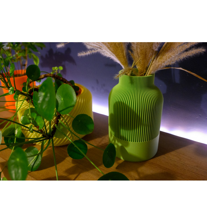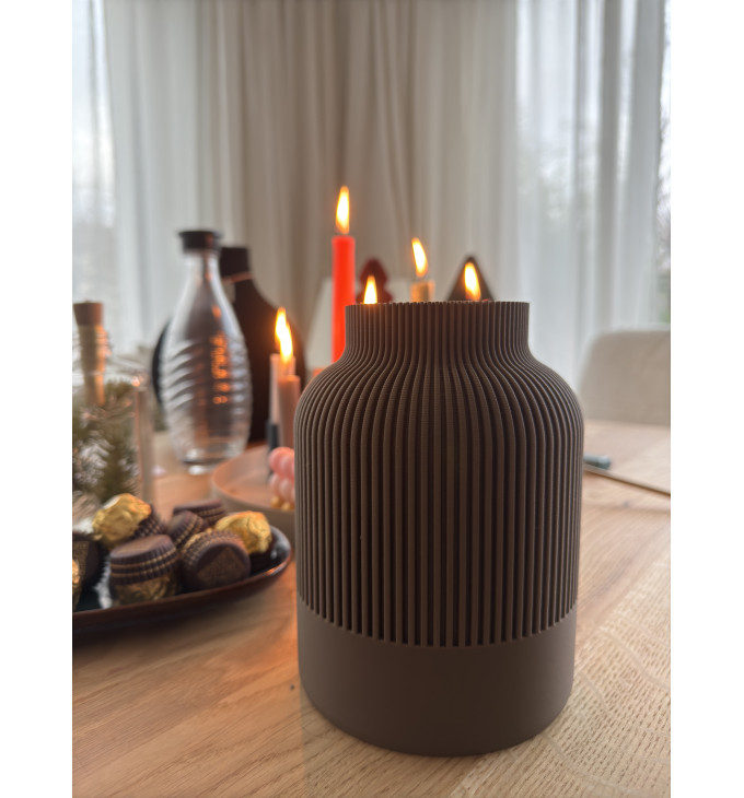 Ši moderni vaza – tai japandi įkvėptas akcentas, kuriame susitinka japoniškas paprastumas ir skandinaviška švara. Subtilios vertikalios rievės sukuria elegantišką šviesos ir šešėlių žaismą, todėl vaza gražiai atrodo tiek ryškioje dienos šviesoje, tiek vakare prie šiltų lempų ar žvakių. Puikiai tinka pavasario dekorui: sausoms smilgoms, šakoms, dirbtinėms kompozicijoms ar kaip minimalistinė interjero detalė lentynoje, ant stalo ar palangės.