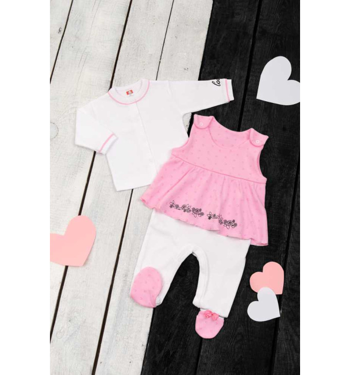 Šliaužtinukų ir marškinėlių rinkinys "Širdelė" – patogus šliaužtinukas kūdikiams kasdienai. Iš švelnios medvilnės – malonus prie odos ir praktiškas pasirinkimas. Gamintojas: 2be3.Kolekcija "Širdelės" yra išskirtinis pasirinkimas mažosioms damoms, kurios nori atrodyti kaip tikros princesės. Šis komplektas susideda iš elegantiškų baltų marškinėlių ir žavios rožinės spalvos šliaužtinukų, kurie ne tik atrodo puikiai, bet ir yra patogūs. Marškinėlių petnešėlės yra pritaikytos lengvam užsegimui su sagutėmis, kas palengvina drabužio keitimą ir užtikrina, kad mažylės jausis patogiai visą dieną. Drabužėliai pagaminti iš aukščiausios kokybės medvilnės, kuri ne tik švelni prie kūdikio odos, bet ir atitinka griežčiausius kokybės reikalavimus. Visi naudojami audiniai yra atidžiai atrinkti, siekiant užtikrinti, kad jie būtų saugūs ir neturėtų jokių kenksmingų priedų ar sunkiųjų metalų, kurie galėtų pakenkti jautriai kūdikių odai. Be to, šie produktai yra sertifikuoti pagal tarptautinį OEKO-TEX® standartą, kuris yra vienas iš patikimiausių tekstilės saugumo ženklų. Kalbant apie kūdikių rūbų priežiūrą, svarbu paminėti, kad švelnūs ir kokybiški audiniai reikalauja tinkamo dėmesio. Pirmiausia, rekomenduojama skalbti kūdikių drabužius atskirai nuo suaugusiųjų drabužių, kad būtų išvengta bet kokio galimo užteršimo. Taip pat svarbu naudoti švelnius, kūdikiams skirtus skalbimo miltelius, kurie neturi stiprių chemikalų ir kvapų, kadangi kūdikių oda yra ypač jautri. Skalbiant kūdikių drabužius, rekomenduojama vengti aukštų temperatūrų, nes tai gali sugadinti audinio struktūrą ir sumažinti drabužio gyvavimo trukmę. Geriausia skalbti ne aukštesnėje kaip 30-40 laipsnių temperatūroje. Be to, būtina atkreipti dėmesį į drabužių džiovinimą – geriausia leisti jiems natūraliai išdžiūti, vengiant tiesioginių saulės spindulių, kurie gali pakeisti audinio spalvą ar netgi susitraukti medžiagą. Lyginant kūdikių drabužius, reikėtų naudoti minimalią šilumą ir vengti garų, kad nebūtų pažeista audinio struktūra. Taip pat svarbu reguliariai tikrinti drabužių siūles ir užsegimus, kad užtikrintumėte, jog jie yra saugūs ir nesukels diskomforto jūsų mažyliui. Kūdikių rūbų priežiūra yra svarbi ne tik dėl estetinių priežasčių, bet ir dėl higienos bei saugumo. Tinkamai prižiūrimi drabužiai ne tik ilgiau išlaiko savo kokybę ir išvaizdą, bet ir užtikrina, kad jūsų mažylis jaustųsi patogiai ir būtų apsaugotas nuo įvairių odos dirginimų. Taigi, rūpinantis kūdikių drabužių priežiūra, svarbu atsiminti šiuos pagrindinius patarimus, kurie padės išlaikyti drabužių švelnumą, švarą ir saugumą. Kam tinka: kūdikiams – kasdienai, darželiui ar kelionėms. Privalumai: švelni medvilnė, patogu judėti, lengva derinti prie kitų kūdikių drabužių. Puikiai tinka kūdikio kraiteliui arba dovanai naujagimiui.| Specifikacija | |