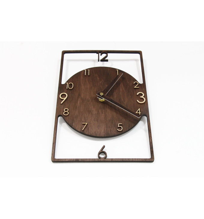 Šis laikrodis turi stačiakampį rėmą, kurio viduje yra apvalios formos ciferblatas. Tai puikus stačiakampio formos medinis sieninis laikrodis, nudažytas tamsiai rudos spalvos, su mediniais skaitmenimis. Jis atrodys madingai pakabintas ant jūsų sienos ir puikiai tiks jūsų namuose ar biure. Be to, laikrodis yra visiškai tylus; jis neskleidžia tiksinčio garso, todėl neerzins, kai norisi tylos ir atsipalaidavimo. Laikrodis pasižymi stačiakampiu dizainu ir unikalia išvaizda. Atrodo kaip įrėmintas meno kūrinys. • Puikus sieninis laikrodis • Aukščiausios kokybės ekologiška beržo fanera • Visiškai tylus • Rankų darbo, poliruotas rankomis • Puiki dovana bet kokiai progai - Kalėdoms, gimtadieniui ir daugiau Maloniai kviečiame pasižiūrėti visus mūsų gamybos laikrodžius mūsų laikrodžių kolekcijoje. Matavimai: 20x30x0.9 cm / 7.9x11.8x0.35" Medžiaga: - Beržo fanera - Laikrodžio mechanizmas Reikalinga AA baterija, kuri į komplektą neįeina. Mūsų įmonė, Promi, dirba su labai plačiai naudojamų medienos plokščių, aliuminio, plastiko, organinio stiklo bei kompozito plokščių apdirbimo (frezavimo, graviravimo, pjovimo) paslaugomis Lietuvoje bei užsienyje. Nuo pat įmonės sukūrimo mes pastoviai investuojame į naują įrangą, atnaujiname gamybos procesus bei valdymo sistemas. Kam tinka: kūdikiams, kaip dovana ir jaukiam namų akcentui. Privalumai: sieninis laikrodis padeda sukurti stilingą vaikų kambario interjerą, tinka krikštynoms ar gimtadieniui.| Specifikacija | |