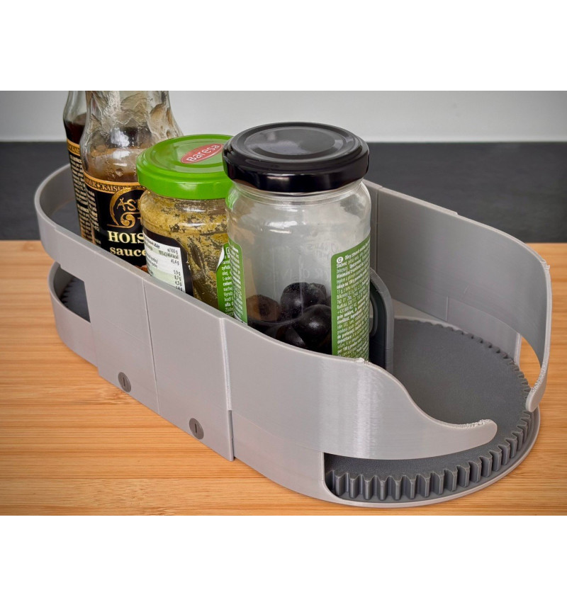 „Suktuko Sandėliukas“ – praktiškas besisukantis organizatorius, skirtas virtuvei, darbo stalui, voniai ar dirbtuvėms. Tiesiog pasukite ir greitai pasieksite, ko reikia – puikiai tinka padažams, skardinėms, buteliukams, kosmetikai, smulkiems įrankiams ar biuro priemonėms. Sukamas mechanizmas taupo vietą ir padeda palaikyti tvarką.