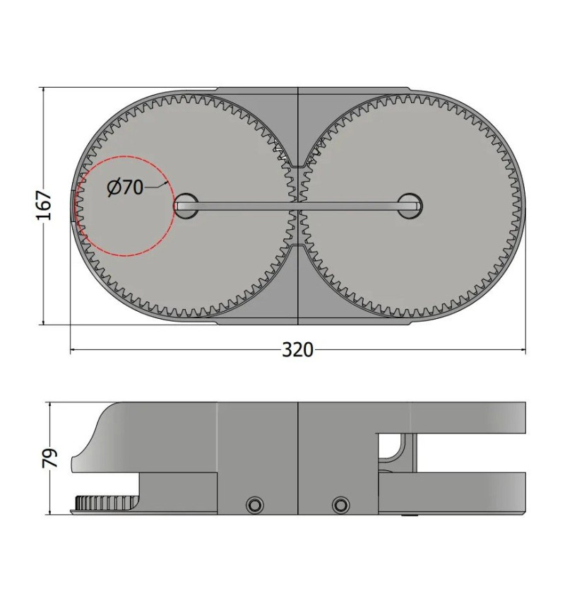 Išmatavimai: 320 × 167 × 79 mm (prireikus galima keisti mastelį spausdinant)