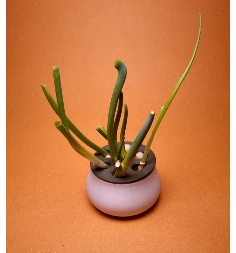 Skirtingo dydžio skylutės leidžia patogiai pritaikyti augintuvę įvairiems svogūnų galvučių dydžiams, o dangtelio forma su atviromis ertmėmis palengvina papildymą vandeniu ir priežiūrą. Tai ypač patogu, jei norite visada turėti šviežių laiškų sriuboms, salotoms, sumuštiniams ar kiaušinienei – be papildomų pirkinių ir be žemių.