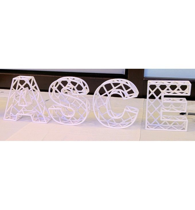 Dydis (apytiksliai, pagal vienos raidės pavyzdį): apie 7.9 × 7.2 × 2.2 cm (raidžių plotis gali šiek tiek skirtis). Svoris ir trukmė: viena raidė ~ 9,5 g , spausdinimas ~ 1 val. (gali kisti priklausomai nuo konkrečios raidės).