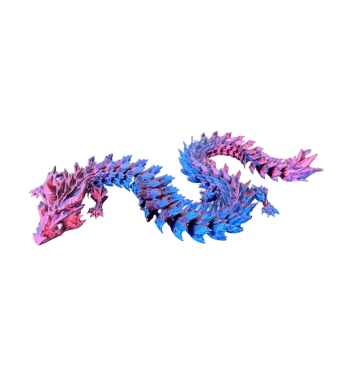 Kompaktiškas Begalybės Slibinas – tai trumpesnė, vietą taupanti „Infinity Serpent“ versija, išlaikanti tą patį banguojantį, gyvatės/draakono siluetą ir įspūdingą judesį. Modelis yra visiškai lankstus (segmentuotas), todėl jį galima lengvai suformuoti į įvairias pozas: susukti į ratą, išlenkti S forma, „apvynioti“ aplink daiktą ar tiesiog padėti kaip išraiškingą dekoraciją.
