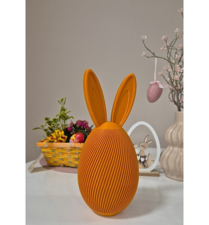Šis velykinis kiaušinis su zuikio ausimis – ne tik dekoracija, bet ir praktiška dėžutė smulkioms staigmenoms. Viduje patogu laikyti saldainius, mažus šokoladinius kiaušinukus, žinutę ar mažą dovanėlę vaikams – puikus akcentas Velykų stalui, dovanų krepšeliui ar namų puošybai.