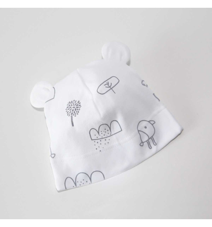 Žymos: Kepurytė, Kepurytė naujagimiams, Kūdikių drabužiai, Vaikiški drabužiai, Drabužiai naujagimiams, Ekologiška medvilnė, balta spalva, Vilaurita