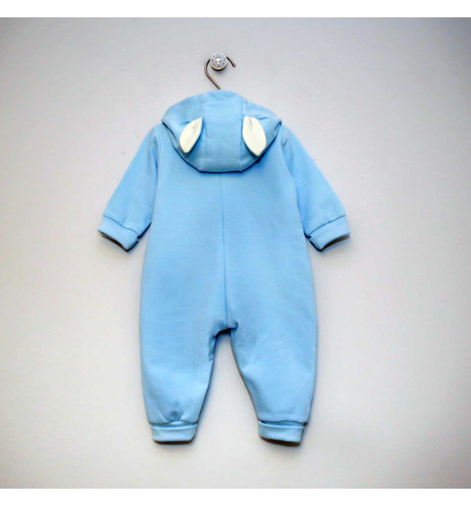 Vilaurita šviesiai melsvas kombinezonas su ausytėmis "Kiškis"