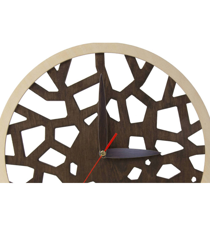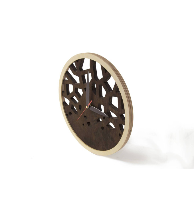 Šis stilingas medinis sieninis laikrodis, su tamsiai rudu mediniu apvadu, yra visiškai išskirtinis ir unikalus. Dizainas primena medžio šakas, kurios auga tiesiai iš laikrodžio centro. Natūralaus medžio ir tamsiai rudos spalvos derinys atrodo puikiai ir madingai. Tokio dizaino laikrodžio nerasite jokioje parduotuvėje ar kitur. Be to, laikrodžio kokybė tikrai jums patiks – jis tarnaus daugelį metų! Šis modernus apskritimo formos sieninis laikrodis puikiai atrodys bet kokiame interjere: miegamajame, svetainėje, valgomajame ar biure. Be to, jis veikia tyliai ir neturi jokio tiksinčio triukšmo. Laikrodžio mechanizmo garantija yra 2 metai. AA baterija reikalinga, tačiau ji nėra įtraukta į komplektą. Matavimai: 30x30x2,4 cm / 11,8x11,8x0,95 coliai Svoris: 440 g Promi dirba su įvairiomis medienos plokštėmis, aliuminiu, plastiku, organiniu stiklu ir kompozitinėmis plokštėmis, teikdama apdirbimo (frezavimo, graviravimo, pjovimo) paslaugas Lietuvoje bei užsienyje. Nuo pat įmonės įkūrimo ji nuolat investuoja į naują įrangą, atnaujina gamybos procesus ir valdymo sistemas. Kam tinka: kūdikiams, kaip dovana ir jaukiam namų akcentui. Privalumai: sieninis laikrodis padeda sukurti stilingą vaikų kambario interjerą, tinka krikštynoms ar gimtadieniui.| Specifikacija | |