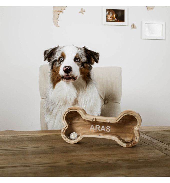 Medinė, kaulo formos taupyklė puikiai tiks kaip dovana. Norėdami paversti šią taupyklę visiškai išskirtine ir nepakartojama, pasirinkite graviravimą, ir mes išgraviruosime jūsų norimą vardą ant smūgiams atsparaus skaidraus organinio stiklo. Galime graviruoti norimą tekstą, pavyzdžiui, šuns vardą. Mūsų įmonė "Promi" dirba su labai plačiai naudojamomis medienos plokštėmis, aliuminiu, plastiku, organiniu stiklu, bei kompozitu. Teikiame plokščių apdirbimo (frezavimo, graviravimo, pjovimo) paslaugas Lietuvoje bei užsienyje. Nuo pat įmonės sukūrimo pastoviai investuojame į naują įrangą, atnaujiname gamybos procesus bei valdymo sistemas. Kam tinka: kūdikiams, kaip dovana ir jaukiam namų akcentui. Privalumai: taupyklė padeda sukurti stilingą vaikų kambario interjerą, tinka krikštynoms ar gimtadieniui.| Specifikacija | |